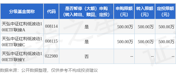 2025-10-17棋牌游戏,棋牌游戏平台,棋牌游戏APP下载证券之星消息,10月16日天弘基金管理有限公司发布《天弘基金管理有限公司关于天弘中证红利低波动100交易型开放式指数证券投资基金联接基金A类基金份额、C类基金份额暂停机构投资者大额申购、转换转入及定期定额投资业务的公告》。公告中提示,为了保证基金的平稳运作,保护基金份额持有人利益,自2025年10月17日起天弘基金管理有限公司关于天弘中证红利低波动100交易型开放式指数证券投资基金联接基金A类基金份额、C类基金份额暂停机构投资者大额申购、转换转入及定期定额投资业务,下属分级基金调整明细如下: